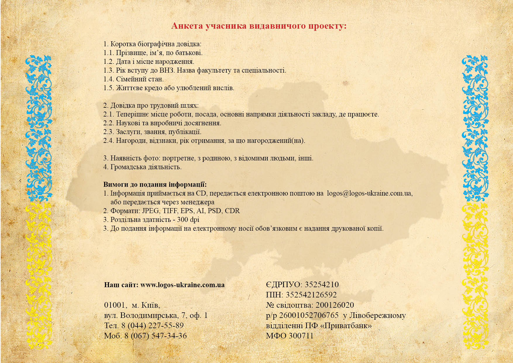 В книгу запрошують почесних особистостей за рекомендаціями видатних українців, трудових колективів, редколегій та галузевих асоціацій